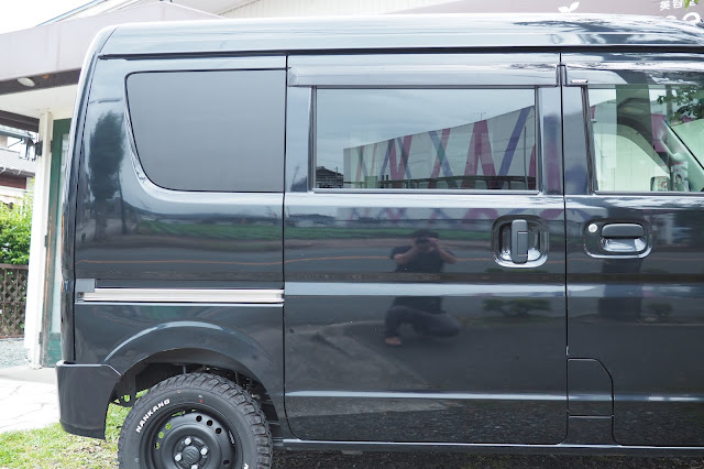 エブリイのリアウィンドをパネルバンみたいにしたくて試しにラバースプレー(剥がせる塗料)を吹いてみた。